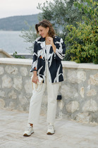 Представьте себе величественную даму, идущую с изяществом и уверенностью, восхищающую всех своим непринужденным стилем. Её образ – это искусное сплетение элегантности и современной роскоши. На ней – женский жакет, созданный для того, чтобы притягивать восхищенные взгляды! Жакет, в котором она словно воплощает элегантность и власть, олицетворяет роскошь и стиль! Он выглядит как произведение искусства: однобортный, с центральной застёжкой на две изысканные пуговицы, создающие ощущение истинного роскошного шика. Отложной воротник с лацканом придает образу особый шарм и респектабельность. Спинка и перед пиджака украшены изысканными рельефами, которые подчеркивают женственные линии фигуры. Прорезные карманы в листочку дополняют его стиль и функциональность, а подкладка добавляет ощущение роскоши и комфорта.