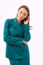 Текстильный классический жакет прямого кроя. Детали: жакет полуприлегающего силуэта, пиджачный воротник, перед с прорезными карманами, двубортная застежка на петли и пуговицы, спинка со средним швом, рукава втачные двухшовные, жакет на подкладке