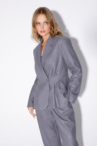 Текстильный классический жакет прямого кроя. Детали: жакет полуприлегающего силуэта, пиджачный воротник, перед с прорезными карманами, двубортная застежка на петли и пуговицы, спинка со средним швом, рукава втачные двухшовные, жакет на подкладке