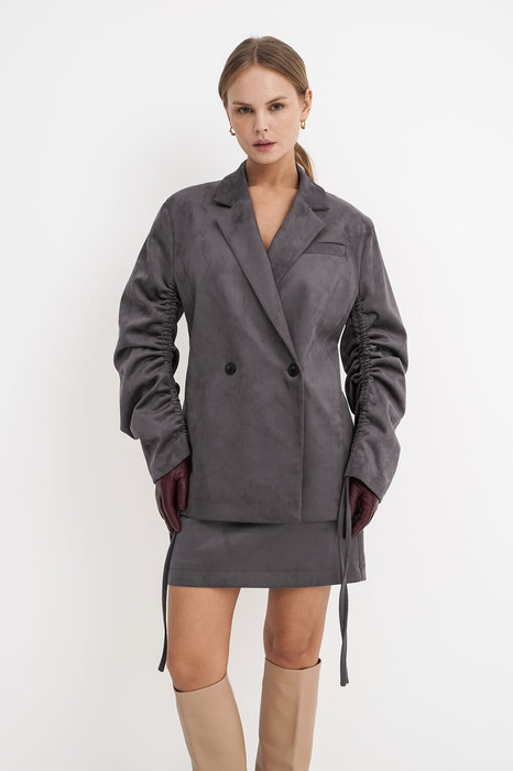 Свободный жакет из замшевой ткани.