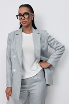 Детали: жакет прямого силуэта, расширенная линия плеч, пиджачный воротник, перед с функциональными карманами, однобортная застежка на петли и пуговицы, спинка со средним швом и шлицей, рукава втачные двухшовные, жакет на подкладке