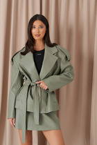 Приталенный жакет со складками и расширенными плечами из фактурной ткани «букле».