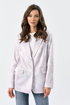 Эффектный жакет из текстильной ткани станет отличным дополнением вашего гардероба. Жакет женский удлиненный, полуприлегающего силуэта с центральной бортовой застежкой на пуговицу, на подкладке. Перед жакета с боковыми рельефными швами от проймы до низа изделия. Воротник отложной пиджачного типа. Перед с прорезными карманами и клапаном. Рукав длинный, втачной, двух шовный. По низу рукава шлица и потайная застежка-обманка на 3 пуговицы. Спинка с боковыми рельефными швами от линии проймы до линии низа и со средним швом.