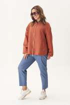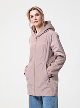 Модель с капюшоном (не отстегивается), два глубоких кармана на груди скрыты небольшими планками, линия талии выполнена резинкой, подол-баска определенно придает изделию шарма, дополняют весь образ изделия - манжеты «воланы»