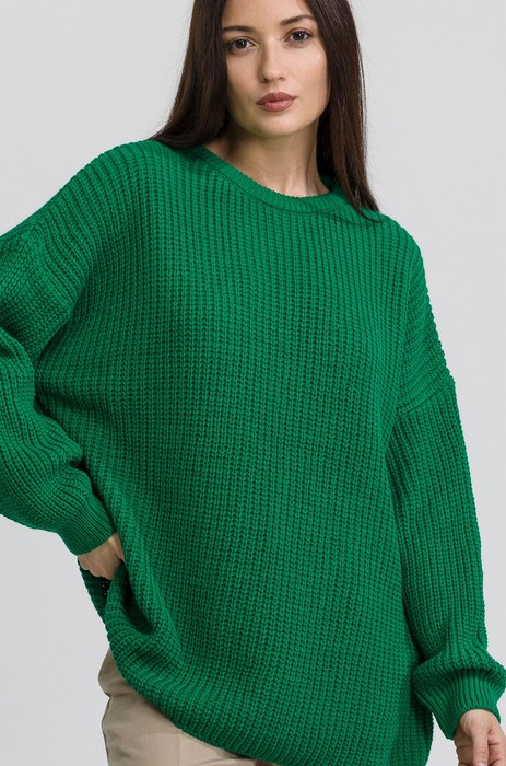 Вязаный трикотаж из смесовой хлопковой и шерстяной пряжи делает свитер нежной, теплой и приятной к телу. Благодаря добавлению акрила удлиненный свитер не вытягивается, надолго сохраняет насыщенный рисунок и не боится частых стирок. Зеленый свитер для женщин станет отличным решением для осенних, зимних и прохладных весенних дней. Длинный рукав согреет в непогоду и защитит от ветра.