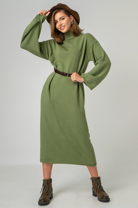 Женское платье оттенка полынь выполнено из вязаного трикотажа с добавлением шерсти. Шерсть отличается естественным теплом и невероятной мягкостью.