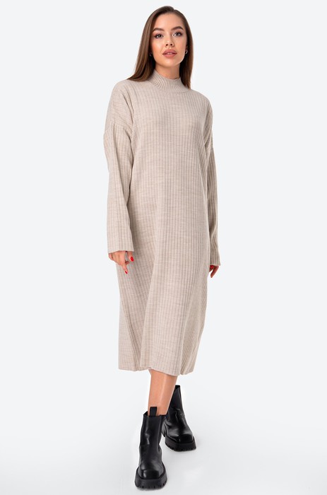 Теплое платье-свитер с длинным рукавом идеально подходит девушкам с разным типом фигуры. Актуальный бежевый цвет и длина миди помогут создать притягательный повседневный образ на осень или зиму. Свободный крой оверсайз (oversize) не стесняет движений, в таком платье будет комфортно в течение всего дня.