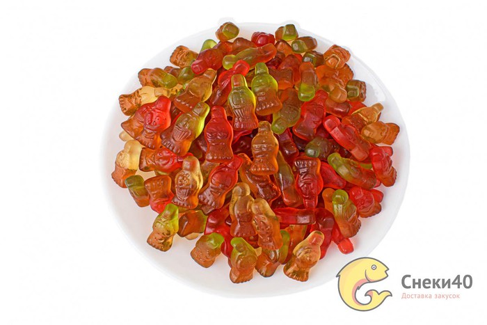 глюкозно-фруктозный сироп, сахар, желатин, концентрированный яблочный сок, регулятор кислотности лимонная кислота, желирующий агент пектин, глазирователь (карнаубский воск , воск пчелиный, антиокислители: альфа-Токоферол, аскорбилпальмитат), красители: Е150с, кармины, унрль растительный, медные комплексы хлорофиллинов, куркумин, ароматизаторы. Продукт может содержать диоксид серы.