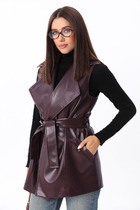 Жилет укороченный, выполнен из стеганной трикотажной ткани серого цвета. Характеристика: жилет А-силуэта, вортник стойка, капюшон цельный с жилетом, центральная застежка на молнию, скрывается под планкой на кнопках, боковые карманы на молнии, по низу изделия резинка с фиксаторами, брендированный подклад, спинка цельнокройная. Длина изделия от края горловины по спинке 58см.