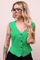 Жилет прилегающего силуэта с центральной бортовой застежкой на 4 прорезные петли и пуговицы.