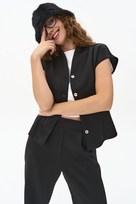 Позвольте представить вам настоящий must-have сезона – наш элегантный костюм который станет неотъемлемой частью вашего гардероба. Почему именно этот костюм? Давайте разберёмся. Во-первых, он выполнен из приятной костюмной ткани, что сразу придает ему роскошный вид. Вас точно заметят. Элегантный комплект состоящий из жилета и широких брюк –  идеальный вариант для разных событий и мероприятий. Но самое главное – это его способность легко интегрироваться в любые сочетания с любыми вещами из гардероба.
