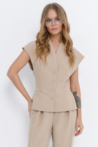 Жилет женский прямого силуэта, со спущенной линией плеча, на подкладке. По горловине капюшон. По переду прорезные карманы с листочкой. Спинка в верхней части со швом, по спинке и полочке косые подрезы. Застежка смещенная на молнию. Низ жилета фигурной формы. Отличный вариант жилета для стильных образов!