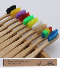 Набор деревянных бамбуковых эко-щеток 20 шт. в бумажном пакете (Цветные)