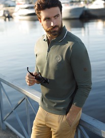 Джемпер-поло из эластичного футера с застежкой на пуговицы