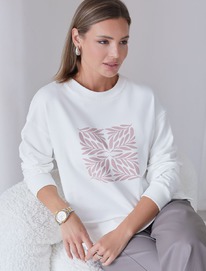 Свободный свитшот с принтом и разрезами из эластичного футера двухнитки без наче
