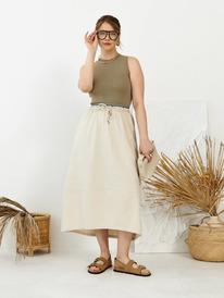 outlet46 romantischer Damen Sommer-Rock mit Bindegrtel aus reinem Leinen M