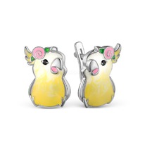 Серьги детские из серебра с эмалью и фианитами родированные - Енотики со-00р216-