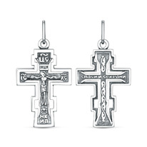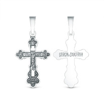 Крест православный из чернёного серебра - Спаси и сохрани 3,4 см 925 пробы 00-00