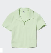 UNIQLO UK CROPPED SKIPPER COLLAR SHORT SLEEVED POLO SHIRT GREEN
