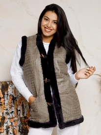 ESENIA Жилет женский из натурального мутона с капюшоном