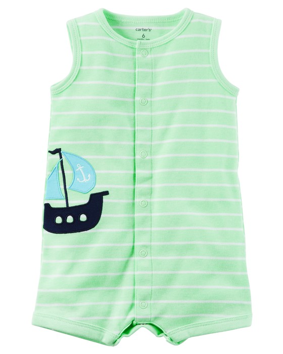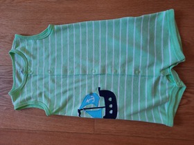 Б/У песочник известного, американского бренда Carters, Snap-Up Neon Romper. Детский песочник Carters в морском стиле для мальчика до двух лет, сшитый из высококачественного мягкого хлопка, отлично дополнит повседневный гардероб малыша солнечным летом. Красивый светло-зеленый цвет, яркий кораблик-аппликация сбоку, нежный трикотаж, удобная застежка на кнопки по всей длине, полукруглый вырез - в этом стильном песочнике Картерс ваш малыш будет чувствовать себя удобно и непринужденно и на прогулке, и дома. Термоэтикетка, которая не вызывает раздражений на нежной коже ребенка. Кнопки не содержат опасного Никеля, который может вызвать раздражение нежной кожи ребенка. Подходит для машинной стирки. Цвет: Green. Состав: мягкий 60% хлопок,40% полиэстер. Размер: 24M для мальчика 24 месяцев, ростом 81-86 см, весом 12,5-13,6 кг. Состояние: б/у, хорошее (есть пару еле заметных пятнышек на лицевой стороне).