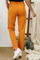 Стильные брюки из хлопка. Модель свободного силуэта, зауженная к низу. Пояс притачной, по спинке-резина. Боковые карманы.