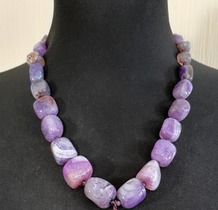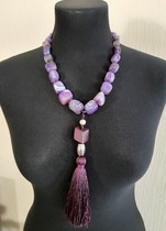 оригинальные бусы из крупных натуральных камней аметиста и чароита