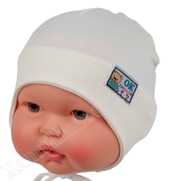 Чепчик для новорожденного с нашивкой 35-40