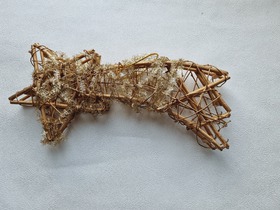 Новое ёлочное украшение падающая звезда, новогодний декор. Эта элегантная плетеная елочная игрушка - идеальный выбор для тех, кто хочет украсить свою елку в этом праздничном сезоне. Она выполнена из высококачественных натуральных материалов и имеет яркий золотой, привлекательный дизайн, который сделает вашу елку настоящим центром внимания. Эта игрушка легко крепится к веткам елки и будет служить долгие годы благодаря своей прочности и надежности. Она подойдет для любого стиля оформления и добавит уют и тепло в ваш дом во время праздников. Состав: дерево, металл, мишура. Размер: 33х15х4 см.