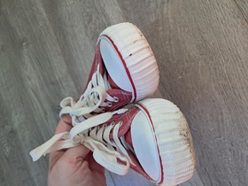 Яркие кеды в хорошем состоянии. Изготовлены из джинсового материала для комфортного ношения. Размер 35 (по стельке примерно 22.5 см). Надеты несколько раз, без значительных дефектов или потертостей. Не хватает лейбочки на подошве и кончики шнурков покоцаны, в остальном состояние идеальное. Подошва не изношена.