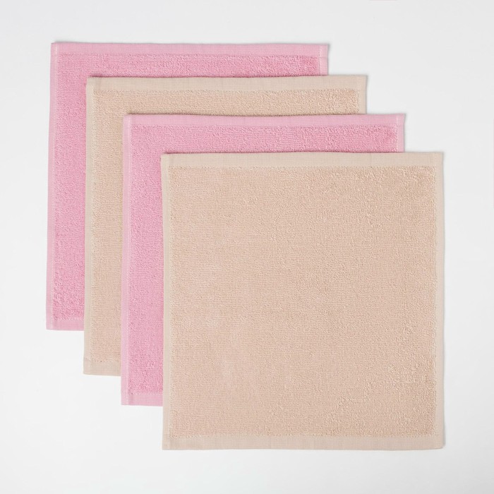 Набор из 4х махровых полотенец 30*30 Розовые/Бежевые
