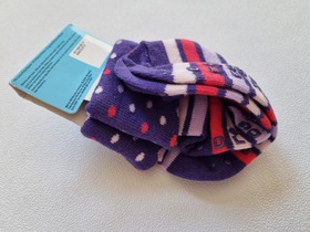 Новые носки известного американского бренда Old Navy, Printed Turn-Cuff Socks for toddler — это дочерняя ветка известного среди почитателей качественной одежды и аксессуаров в доступном ценовом сегменте бренда GAP. Полосатые носки гольфы в горошек, на каждый день. Мягкая смесь хлопка с удобной эластичностью. Текстурированные резиновые логотипы на подошве (нескользящая подошва). Цвет: Purple Dots. Состав: 70% хлопок, 27% полиэстер, 3 спандекс. Размер: 4T/5T, для девочки 4-5 лет ростом 99-114 см. Длина стопы 15-18 см.