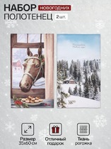 Набор кухонных полотенец 2шт из рогожки Зимняя сказка