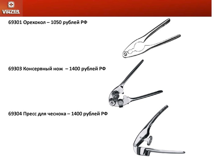 Размеры: Консервный нож, Орехокол, Пресс для чеснока