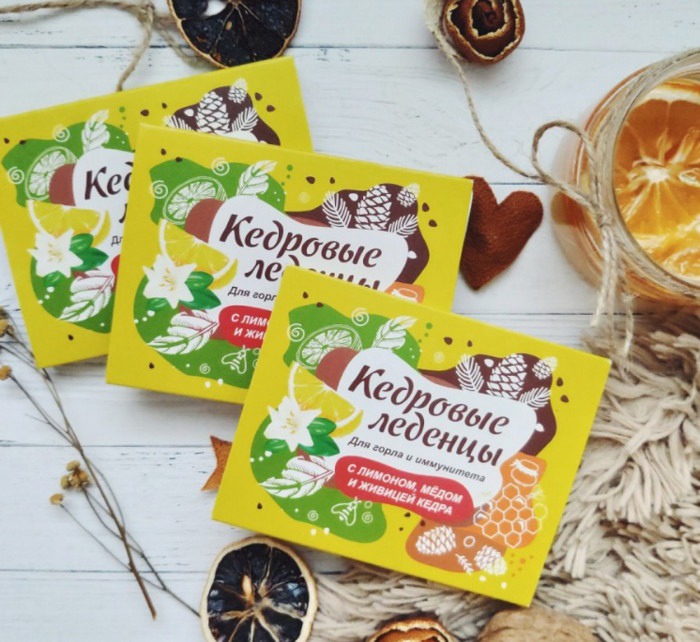 Леденцы содержат натуральные природные компоненты: живицу кедра, порполис и мёд.