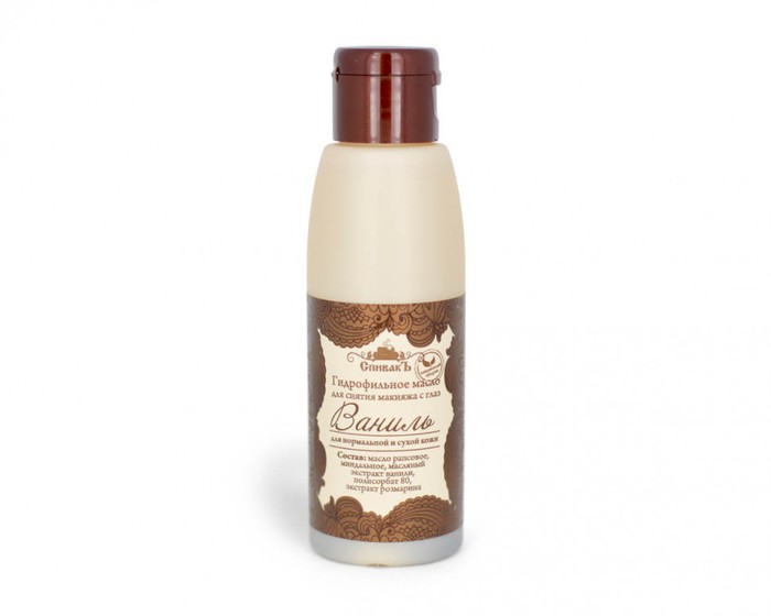 Гидрофильное масло Ваниль для снятия макияжа с нежным ароматом ванили подходит в том числе и для области вокруг глаз. Очищает и питает кожу. Содержит масляный экстракт ванили, который способствует омоложению кожи, повышает её эластичность и упругость, выравнивает цвет, обладает легким матирующим эффектом. Восстанавливает кожу, обладает регенерирующими свойствами. Миндальное и рапсовое масла питают кожу, богаты моно- и полиненасыщенными кислотами (Омега-3, 6, 9), препятствуют выведению влаги из организма.