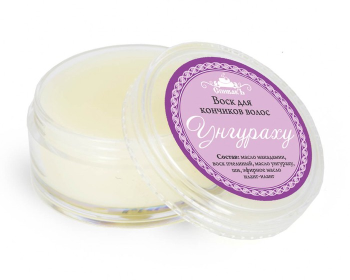 Воск для кончиков волос Унгураху — прекрасное вспомогательное средство в повседневном уходе за волосами. Мы постоянно сталкиваемся с неблагоприятными факторами окружающей среды, которые вызывают сухость, ломкость, расщепление волос и в итоге приводят к секущимся кончикам. Масло унгураху не слишком известно в России, но на своей родине, в Амазонии, оно является универсальным средством для ухода за кожей и волосами, а в Европе его даже называют "оливковым маслом Амазонии". Отличается высоким содержанием полезных веществ, является непревзойденным средством против ломкости и сечения волос. Глубоко питает волосы, восстанавливает здоровую структуру, обладает высокой активностью в составе масляных смесей. Эфирное масло иланг-иланг также признано одним из лучших против сечения кончиков волос, укрепляет, устраняет сухость, тусклость, ломкость волос. А удивительный цветочный аромат поднимает настроение и заряжает позитивом на весь день!