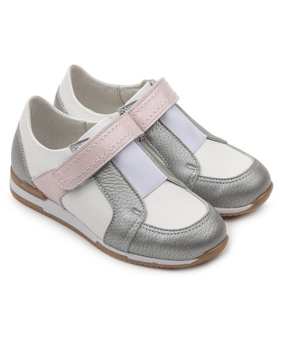 Модные полуботинки в спортивном стиле для девочки. Выполнены из гладкой кожи самых актуальных цветов - белого, серебристого и розового лака. Удобная застежка на ремешок с липучкой. Эластичная резинка позволяет обуви плотно прилегать к ноге. Подкладка из мягкой натуральной кожи. Анатомическая многослойная стелька с выкладкой свода стопы. Упругая, умеренно-эластичная подошва с естесственным перекатом, жесткий задник.