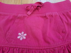 Б/У юбка от немецкого бренда Here + There. Легкая двухуровневая юбка для девочки с эластичной талией на резинке. Имитация завязки на поясе и карманы кенгуру с вышивкой. В такой непринужденной юбочке ваша дочка может гулять, путешествовать или играть с друзьями, не испытывая ни малейших неудобств в жаркую погоду. Цвет: pink. Состав: 100% хлопок. Размер: 5 для девочки 5 лет, ростом 115 см. Состояние: б/у, хорошее (сзади есть малозаметные пятнышки). Замеры: длина 24 см, ширина талии 24 см, ширина подола 49 см.